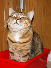 We has held a Convenshun of Annoyed Tabbys (CAT) an insisted on a new post. We also asked fur a new pictor at the top of the page... the old pictor was actually flipped ofur so you was all seein us in the mirror. Or sumfing like that. Anyway, dis new pictor is more recent an not flipped, so Nina's split-color nose has the colors on the right sides!
